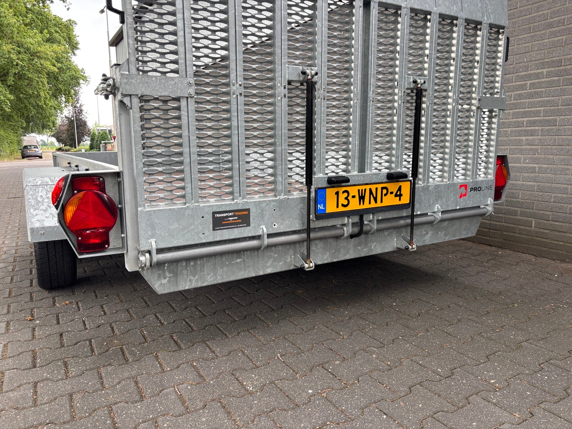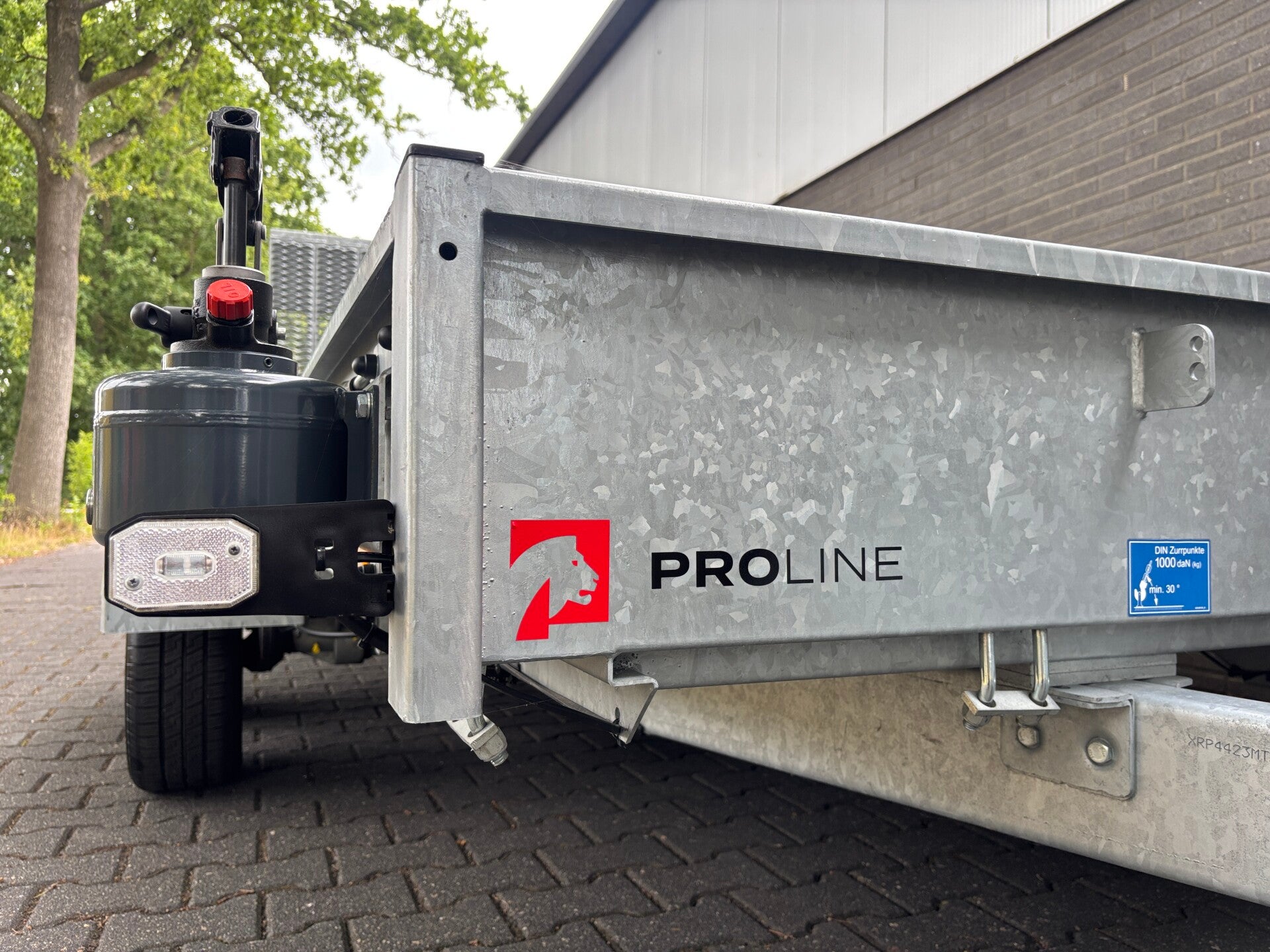 Hierbij bieden wij u deze in uitmuntende staat verkerende en unieke Proline 3500 KG hydraulisch zakbare transporter aan van het bouwjaar 2025! Het betreft een showroom model. Deze aanhangwagen is voorzien van: oprijklep over de gehele breedte met haaientandprofiel, sjorogen in de binnenbak (1000 KG per sjoroog), hydraulisch zakbaar met dubbelwerkende pomp, wielkeggen, breedteverlichting en een automatisch opklapbaar verzwaard neuswiel! De laadvloer van de machinetransporter kan door middel van een hydraulisch dubbelwerkende pomp neergelaten worden, de oprijkhoek bedraagt dan slechts 7 graden! Ideaal voor machines met een geringe bodemvrijheid. Kortom, een complete aanhangwagen welke per direct beschikbaar en inzetbaar is. Het betreft een showroom model welke wordt aangeboden voor een zeer scherpe prijs. Eventueel is in overleg bezorging van de aanhangwagen mogelijk.