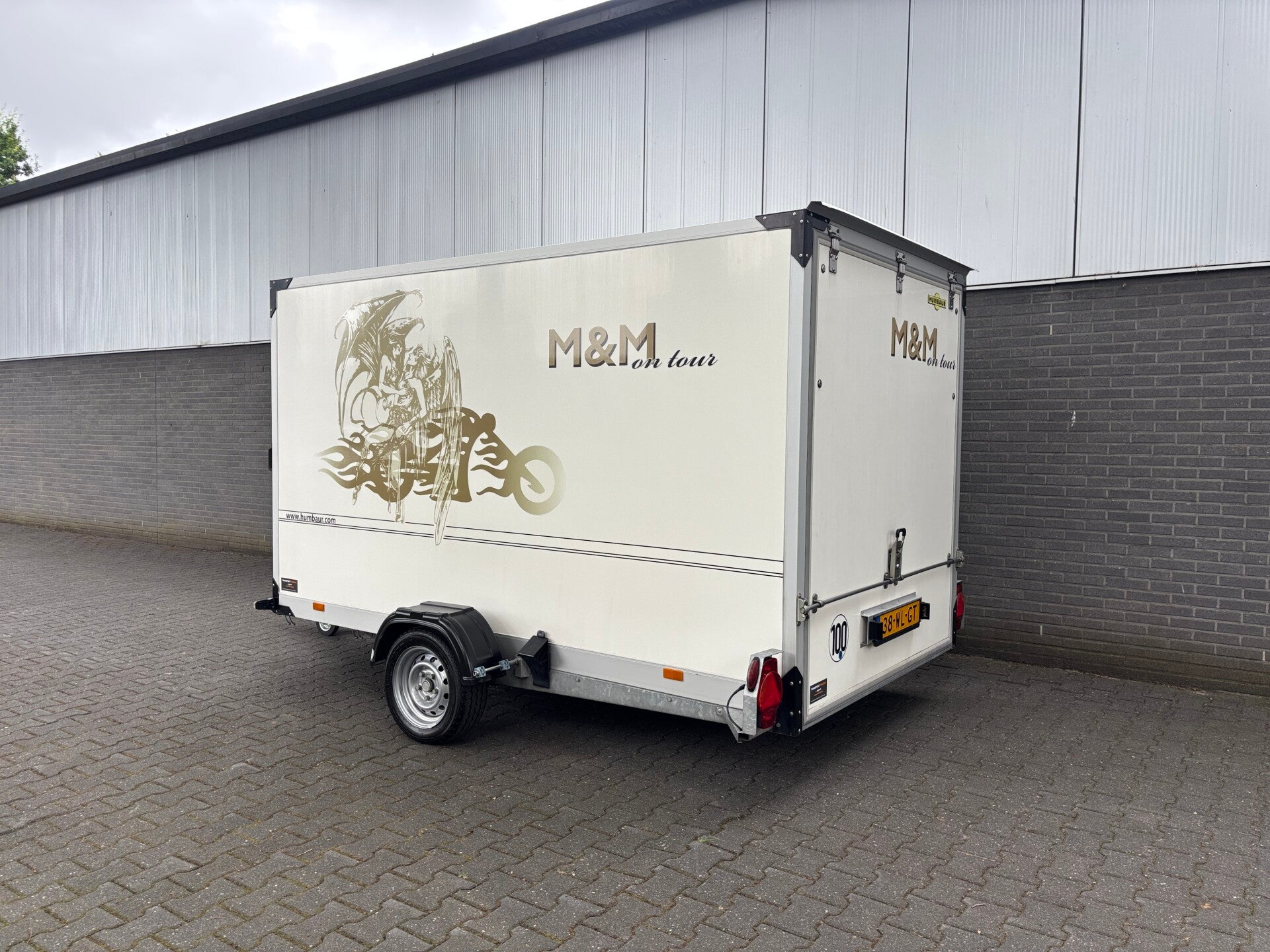 Hierbij bieden wij u deze zeer nette en ruime Humbaur hydraulisch zakbare gesloten aanhangwagen aan. Het betreft de Humbaur HKT KOFFER afkomstig van de eerste eigenaar. Deze aanhangwagen is voorzien van: afsluitbare opbouw inclusief originele sleutels, Ace-Bikes Steadystand motorsteun, Tempo 100 keuring, schokdempers, Novio-Box afsluitbare disselbak, bindogen in de binnenbak, rangeergreep aan de voorzijde, wielkeggen, reservewiel en een versterkt automatisch opklapbaar neuswiel! Kortom, een zeer complete aanhangwagen welke per direct beschikbaar en inzetbaar is. Eventueel is in overleg bezorging van de aanhangwagen mogelijk.